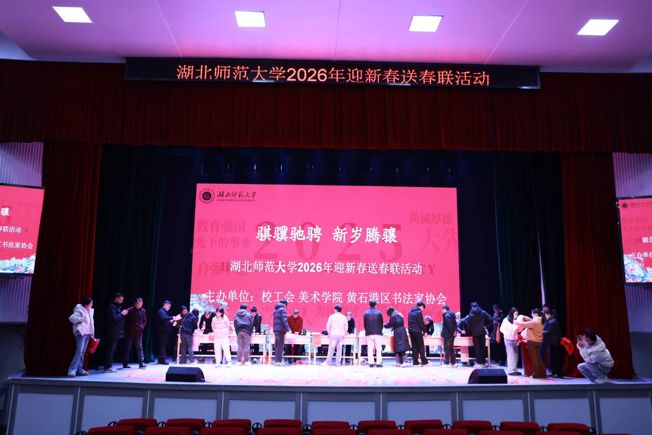 金蛇贺岁辞旧去,骏马奔腾启新程。为弘扬中华优秀传统文化,营造喜庆祥和的节日氛围,丰富教职工精神文化生活,12月30日上午,校工会在湖师大礼堂举办“骐骥驰骋,新岁腾骧”湖北师范大学2026年迎新春送春联活动。活动以笔墨雅韵传递温暖祝福,让广大教职工提前感受到浓浓的年味。