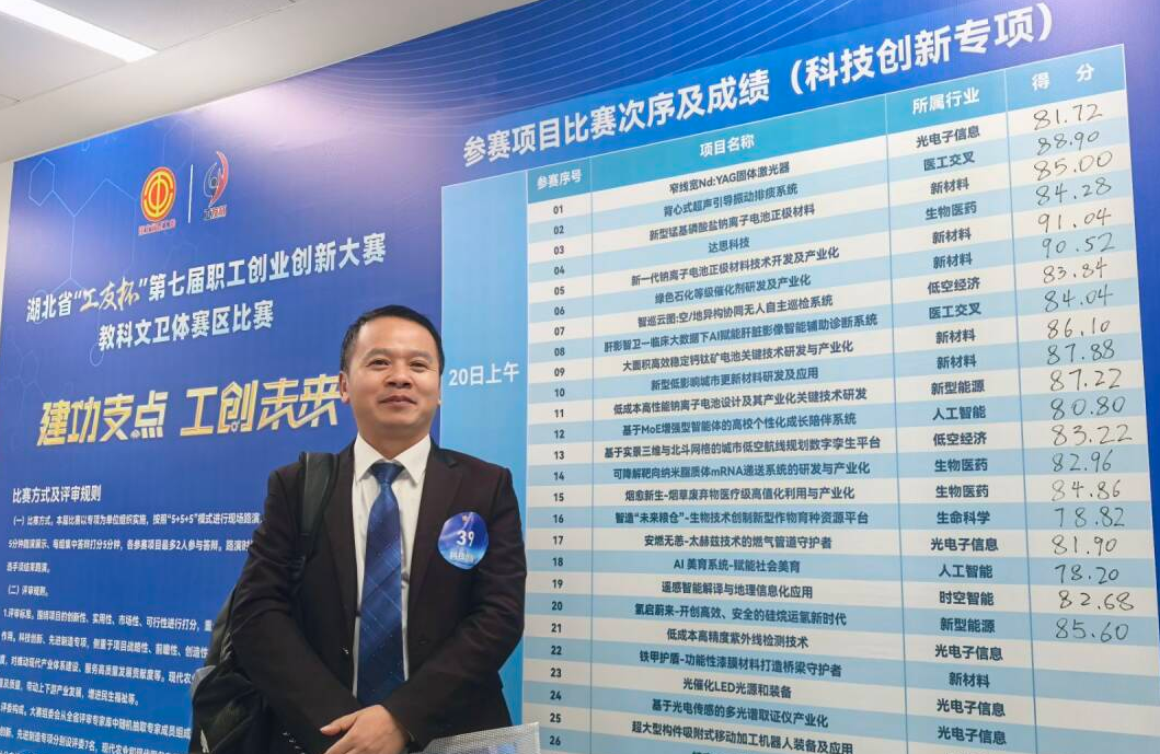 此次大赛旨在弘扬劳模精神、劳动精神、工匠精神,为教职工创新创业搭建交流平台。学校将以此次获奖为契机,进一步激发广大教职工的创新创造活力,加强关键技术攻坚,推动科研成果落地转化,为服务湖北省支点建设注入更多湖师智慧与力量。