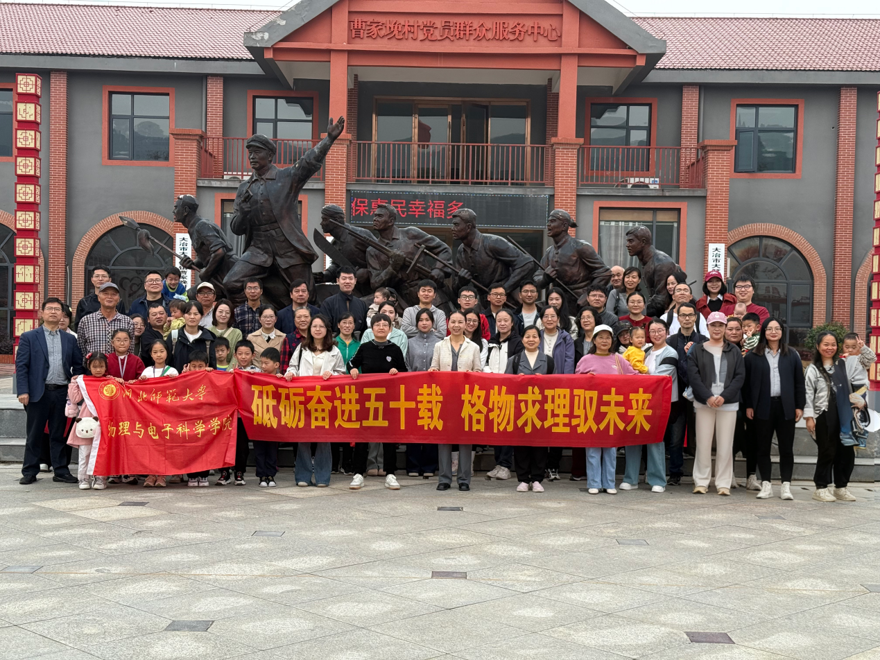 为丰富学院教职工的精神文化生活,增强凝聚力,同时以蓬勃朝气庆祝学院50周年华诞,11月1日,物理与电子科学学院工会组织教职工赴大冶大箕铺镇曹家晚村及鑫东农业基地,开展以“红韵传承,秋摘乐享”为主题的秋季户外活动。