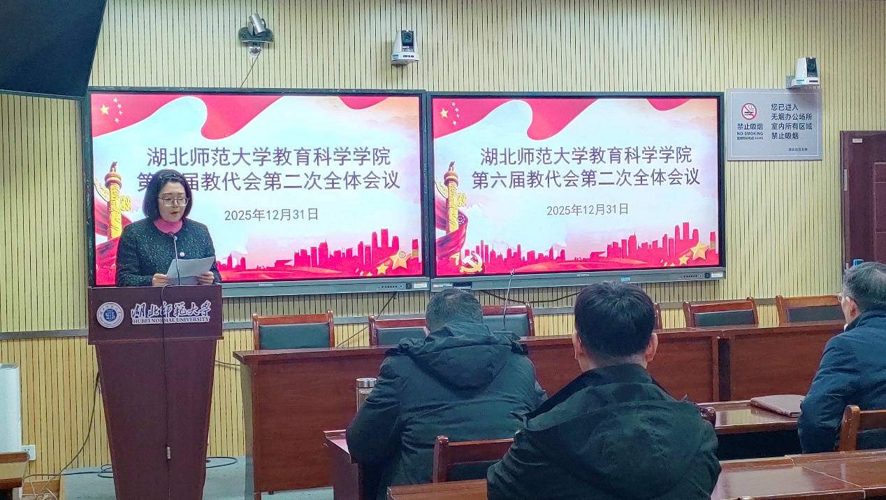12月31日下午,教育科学学院第六届教代会第二次全体会议在1316A会议室举行,学院领导班子及全体教职工参加了会议,会议由学院党委书记罗杨主持。