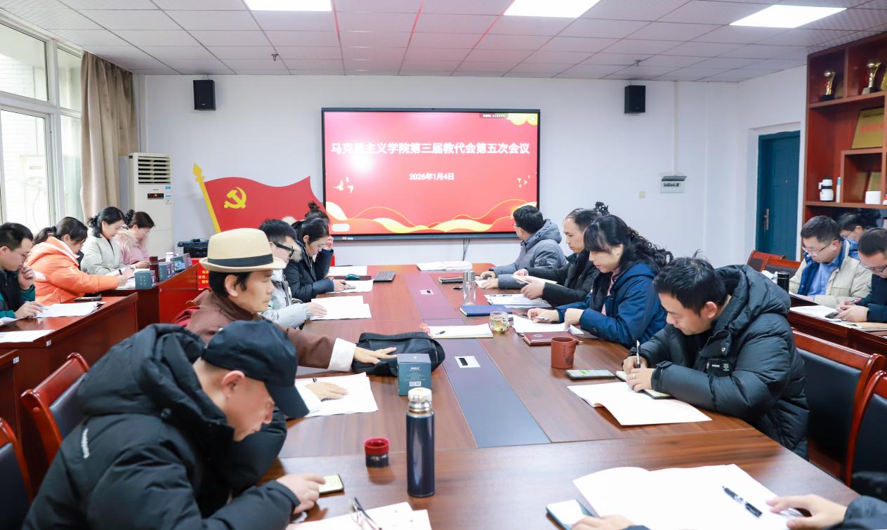 2026年1月4日下午,在庄严的国歌声中,马克思主义学院第三届第五次教职工代表大会在马克思主义学院会议室隆重召开。马克思主义学院全体教职工及工会会员出席并参加了此次会议,院党委书记李洁主持会议。