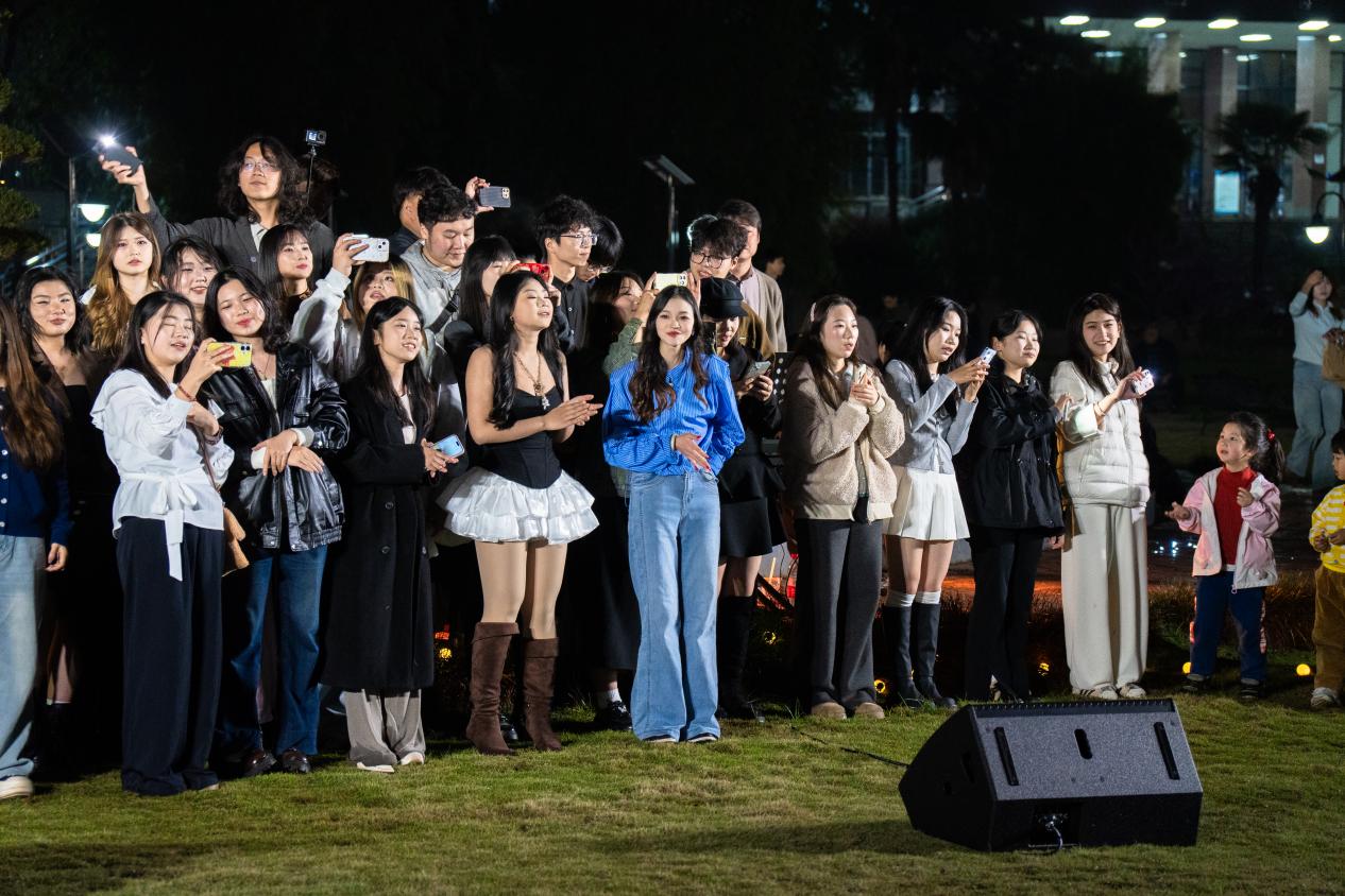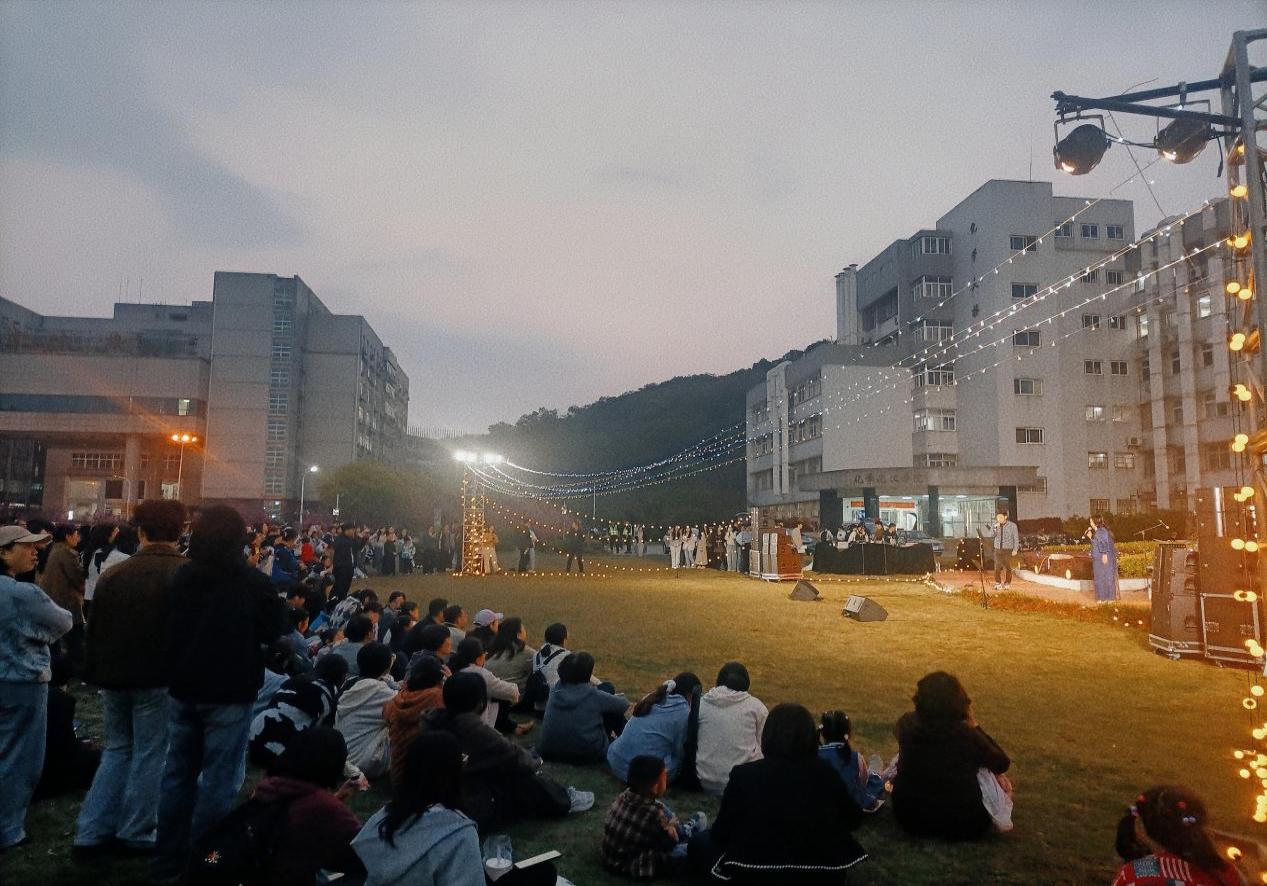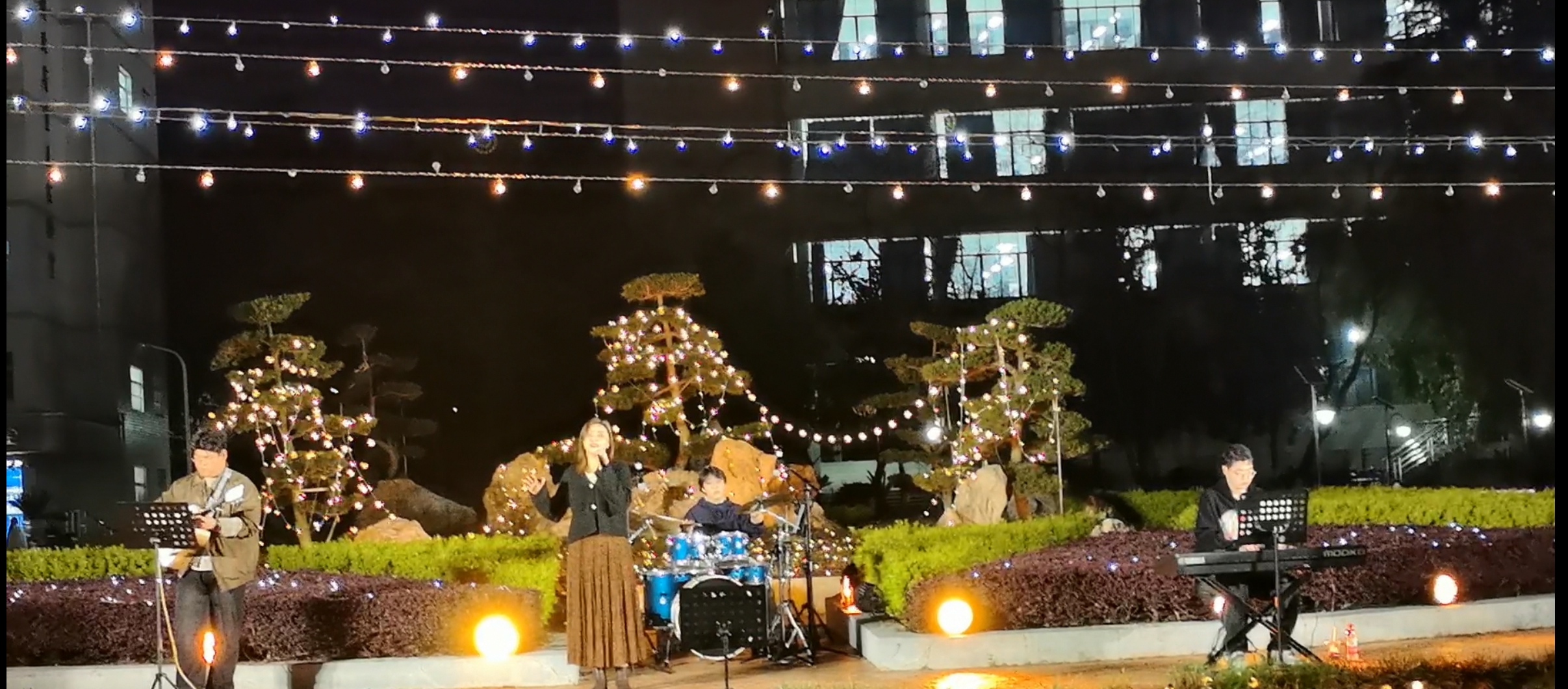 夜幕初垂,活动在“小燕子合唱团”的舒缓歌声中拉开帷幕。灯串缠绕如繁星点点,师生席地而坐挥手合唱,现场洋溢着轻松愉悦的氛围。随后,主持人李季登台,以活泼幽默的语言向现场师生献上诚挚的假日问候,并宣布音乐沙龙正式开始。